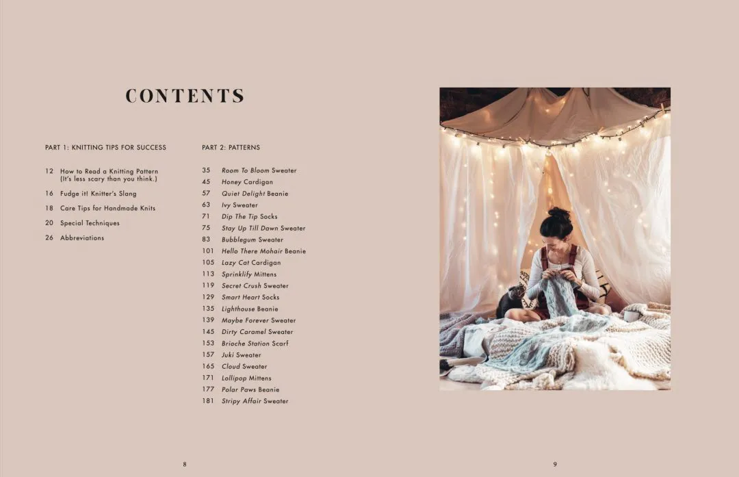 Knit This! includes both advanced and beginner-friendly projects. Many of the knits are worked with big size needles, making them nice and quick to finish. Yarn from fluffy mohair to more rustic wool comes in glowy, natural tones and sweet, pastel treats. Whether a keen amateur or seasoned knitter, one thing’s for sure – you’ll be hooked!