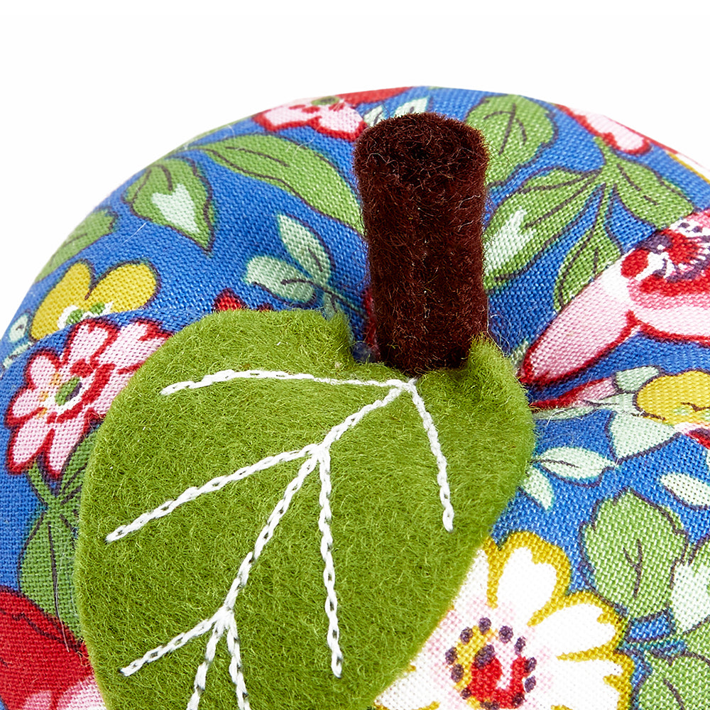 Liberty Apple Pin Cushion patchworked in the Heirloom collection Lasenby fabric. Composition: Outer: 100% Cotton, Inner: Polyester Stuffing. Dimensions: 8cm x 7.5cm x 7.5cm (3 1/8in x 3in x3in)