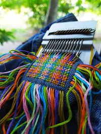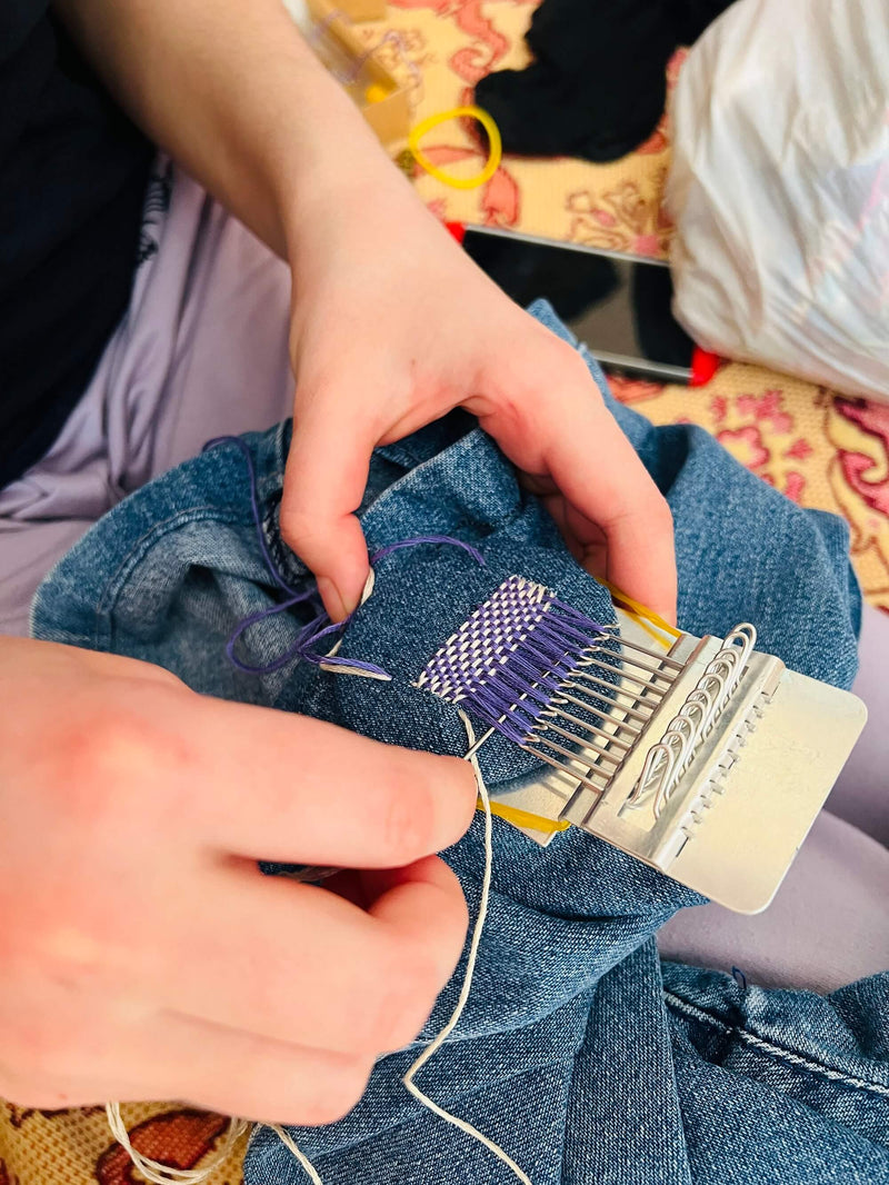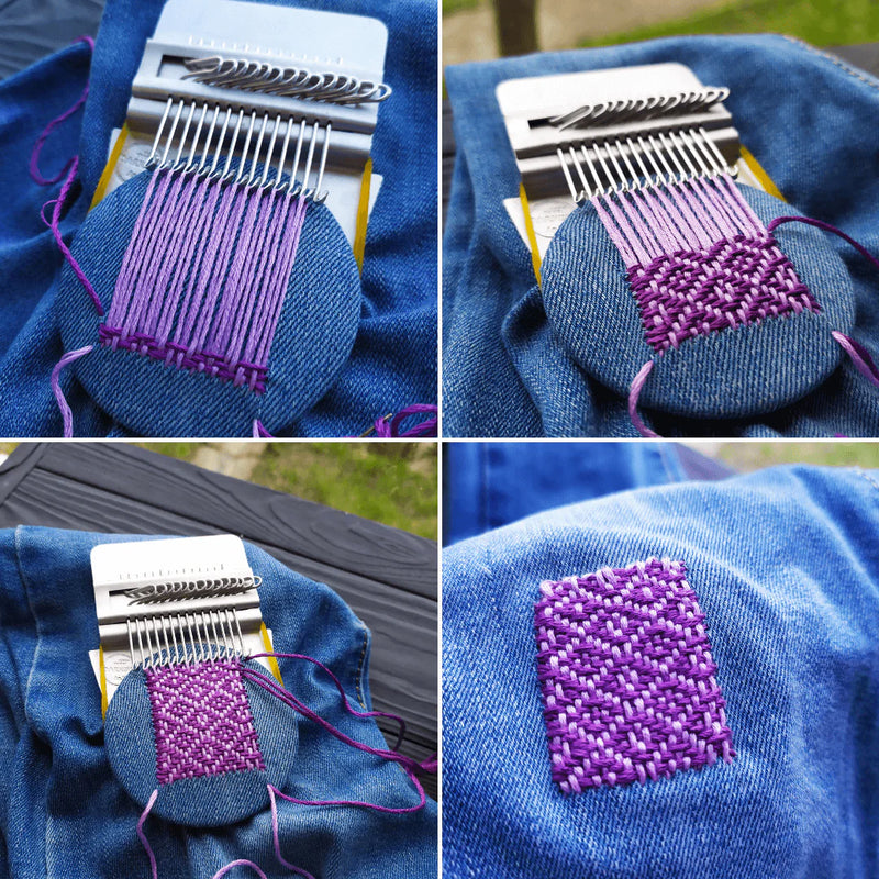 Mend your sweaters, jeans, shirts, bags, plus more with the SpeedWeve 14 Hook Darning Loom! Create all kinds of fun designs. Use all 14 hooks or less, if you want a smaller design. Uses only a minimal amount of yarn/embroidery floss and a long darning needle, then let your imagination go!