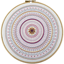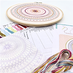 Hours of meditative stitching await you with this lovely mandala! This embroidery kit contains everything you need except the hoop to complete the advanced beginner project.